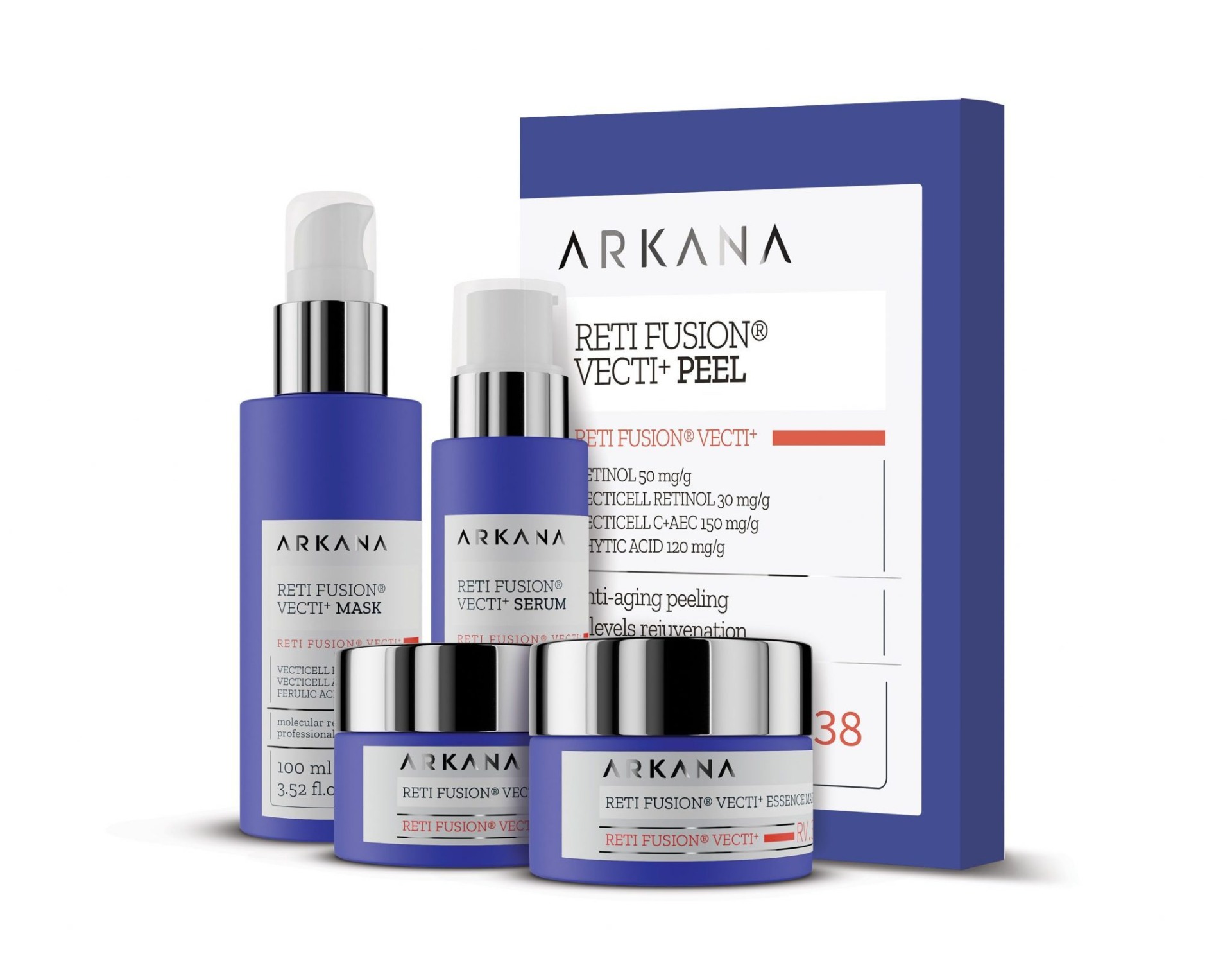 - A Reti Fusion Vecti retinolos hatóanyagi serkentik a kollagén- és elasztintermelést, csökkentik a finom vonalakat és ráncokat, miközben fokkozzák a bőr regenerációját.